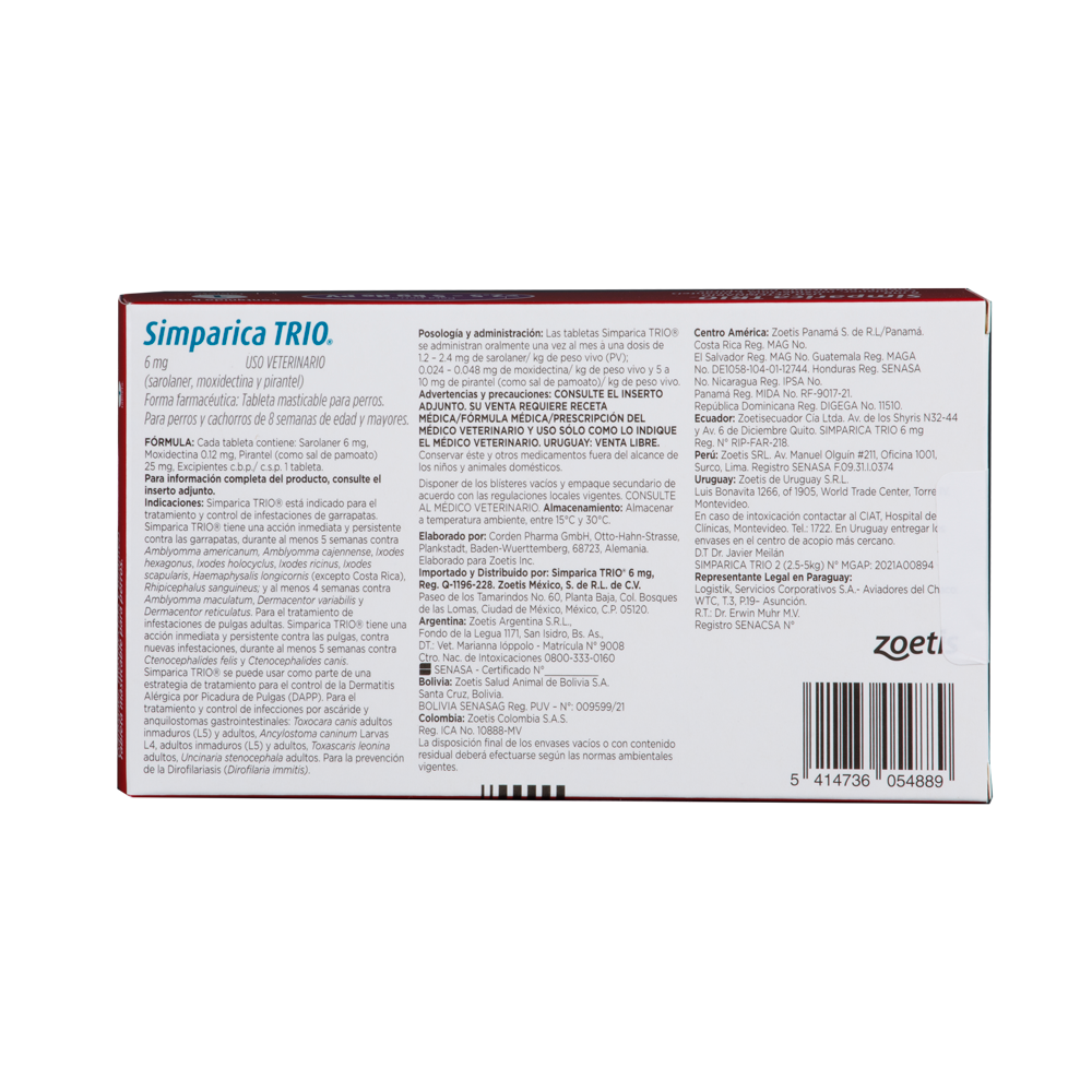 Antiparasitario Interno y Externo para perro Simparica Trio 2.5 Kg – 5 Kg 1 Tableta