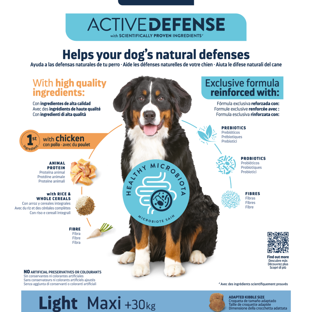 Advance Adult Maxi Light es un alimento para perros con tendencia al sobrepeso. Gracias a su fórmula baja en grasas, ayuda a controlar su peso. Su alto nivel de fibra y proteína ayudan a saciar el apetito y a mantener la masa muscular.