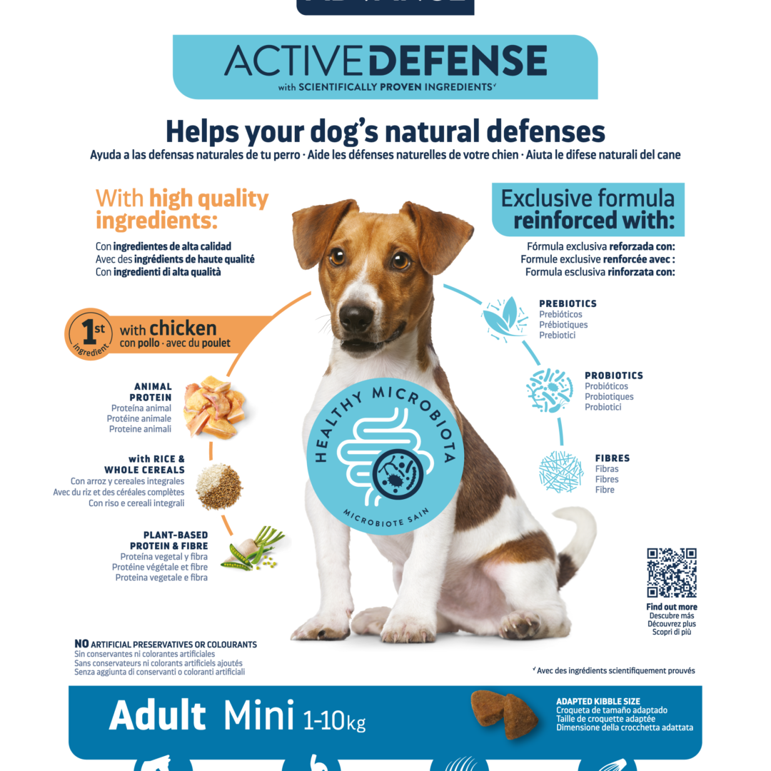 Advance Adult Mini es un alimento de alta calidad, fácil de digerir y formulado para cubrir las necesidades de los perros adultos de tamaño pequeño. Está elaborado con pollo como primer ingrediente. Ayuda a mantener la masa muscular gracias a su nivel de proteina de alta calidad y contribuye a una piel saludable y un pelo brillante gracias a los ácidos grasos omega 6 y 3.