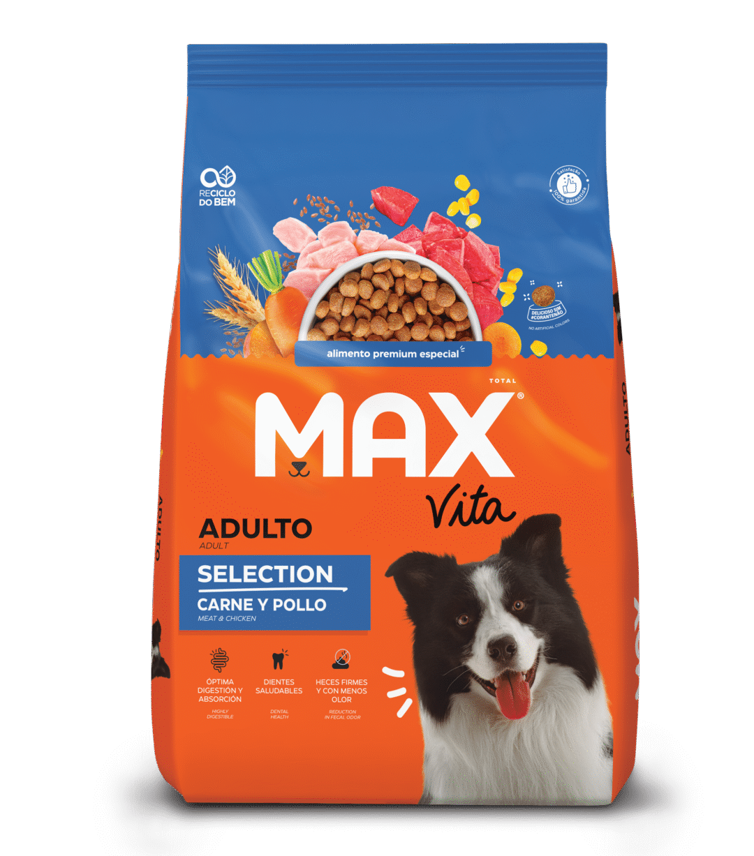 La línea Max Vita cuenta con el sello VITA COMPLEX que garantiza una alimentación 100% balanceada y llena de ingredientes que hacen que el día a día de tu mascota sea completo y feliz: desde el plato, con consumo total de la racion, hasta una excelente digestibilidad que mostrara heces firmes y sin olor. Con Max Vita tu mejor amigo estará siempre activo para disfrutar con él cada momento.