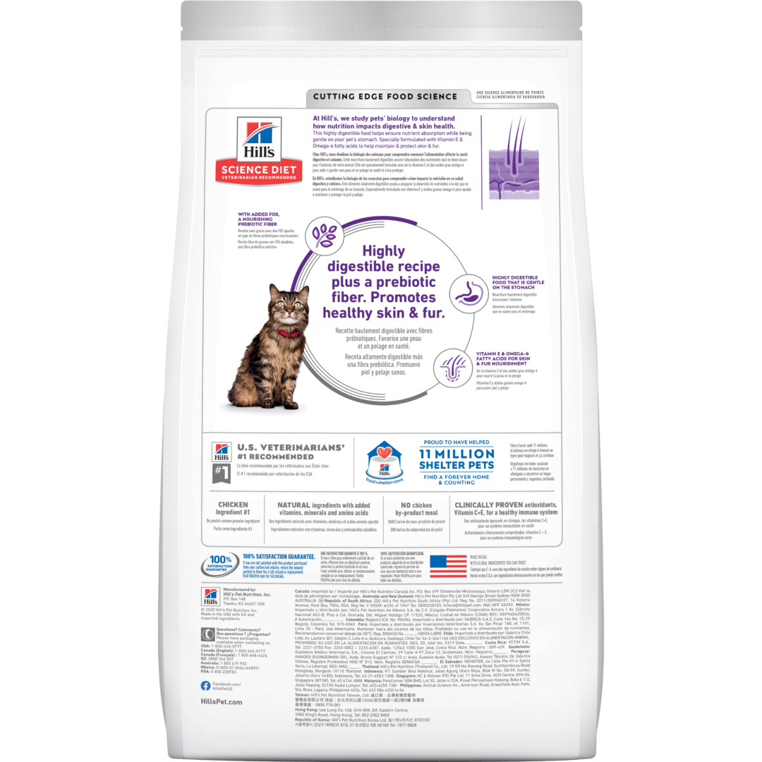 Esta comida para gatos les da los nutrientes y el alimento balanceado que necesitan para mejorar la piel y el pelaje. Este concentrado para gatos de Hills esta hecho con ingredientes de primera calidad para facilitar la absorción de nutrientes y aumentar el funcionamiento del sistema digestivo.
