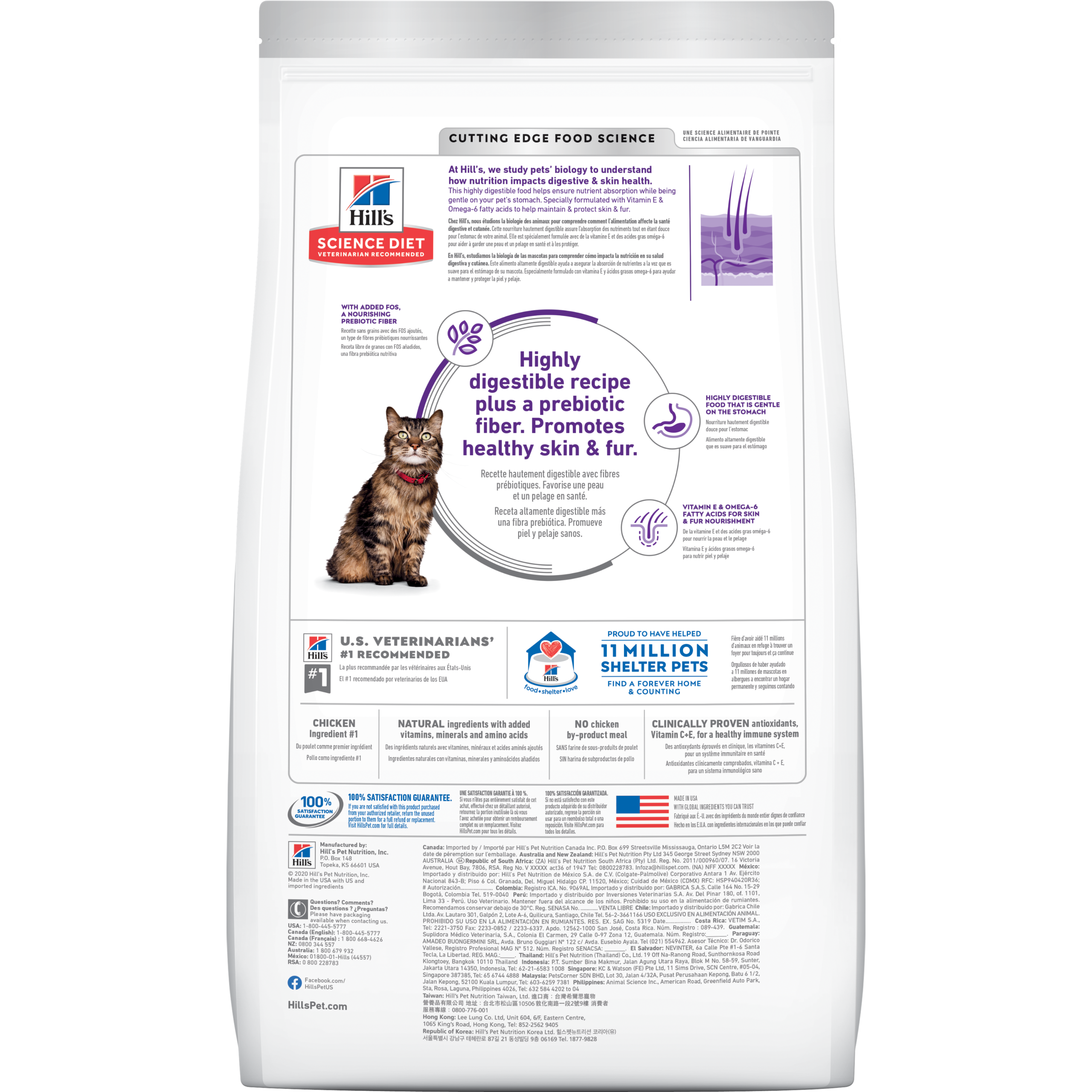 El alimento para gatos adultos Hill´s Adult Stomach & Skin contiene una mezcla de nutrientes que ayudan a mantener el sistema digestivo y piel de los gatos.